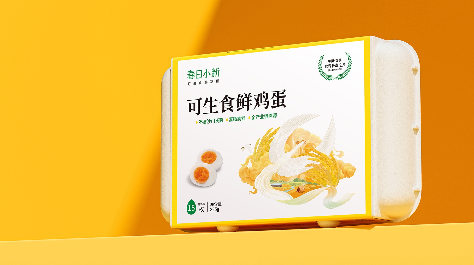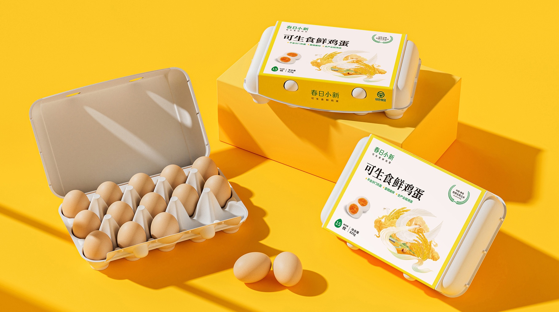 同道對春日小新可生食鮮雞蛋產品包裝進行重新的視覺設計,以區別市面上花花綠綠的國潮插畫,以更加具有質感及獨特的視覺符號讓產品更具檔次感,便于在琳瑯滿目在終端貨架陳列中更加具有產品的識別力及認知力。