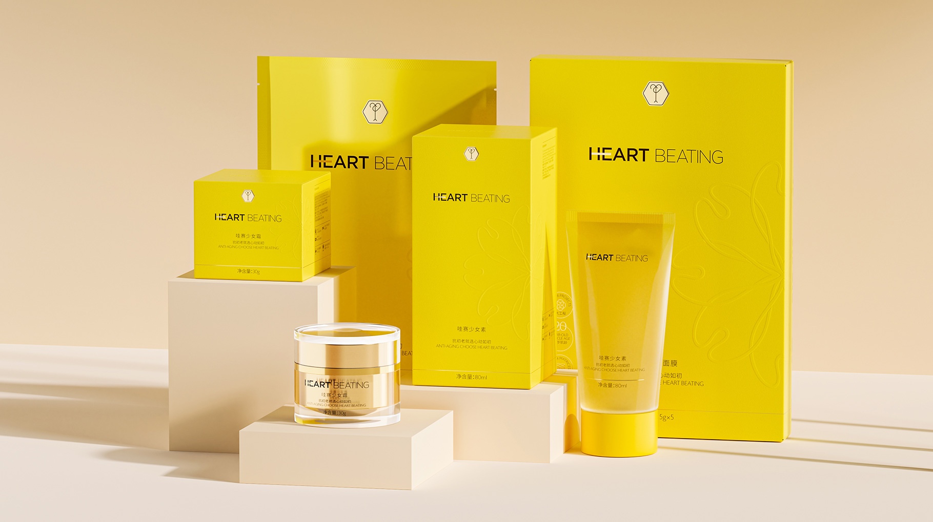 HEART BEATING、心動如初、護膚品LOGO、護膚品產(chǎn)品包裝設計、護膚品包裝設計公司、護膚品包裝設計、深圳包裝設計公司