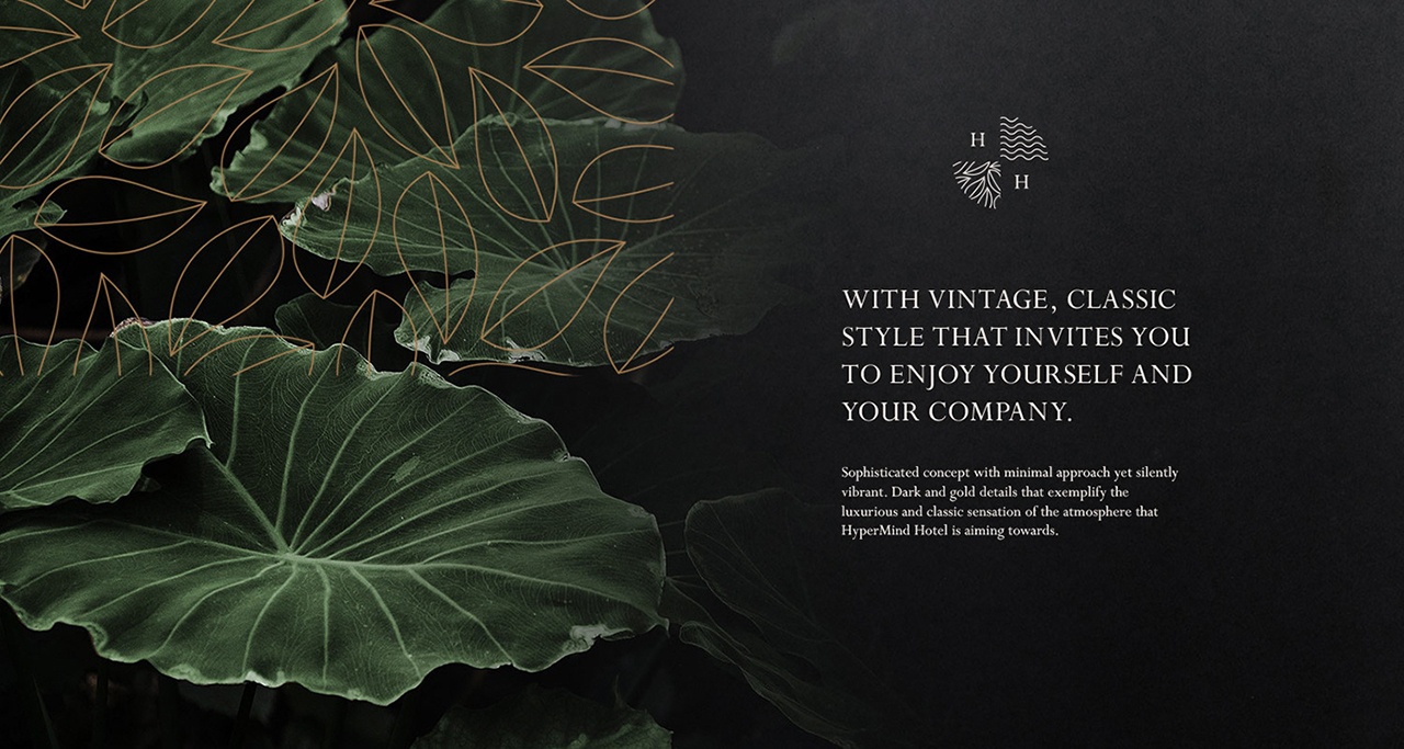 HyperMind Hotel精致的vi設(shè)計、簡約的酒店品牌頁面、靜謐活潑的黑色和金色細節(jié),都在彰顯著 HyperMind 酒店品牌的豪華氛圍和復(fù)古經(jīng)典風(fēng)格,深色和柔和的調(diào)色板,帶來酒店優(yōu)雅、大方的視覺形象,讓人們在這里也可以擁有一段親近大自然的愉快體驗